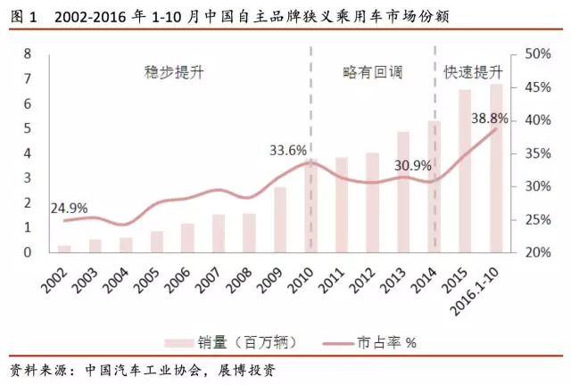 2)第二阶段,2011-2015年由于汽车刺激政策退出、市场竞争加剧、核心技术缺乏等因素,自主品牌节节败退,年均销量增速显著下降至8.9%,市场份额也向下回调2.7个百分点,这个阶段的产品更加侧重于颜值与做工;