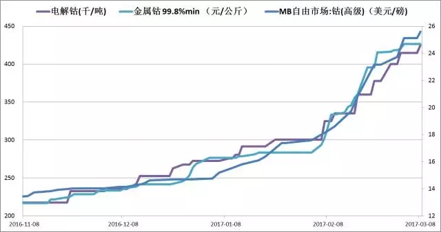 供给方面,2017年全球依然没有新的大型矿山项目,最快投产的大型刚果金钴矿项目预计要等到2018年之后才会启动。