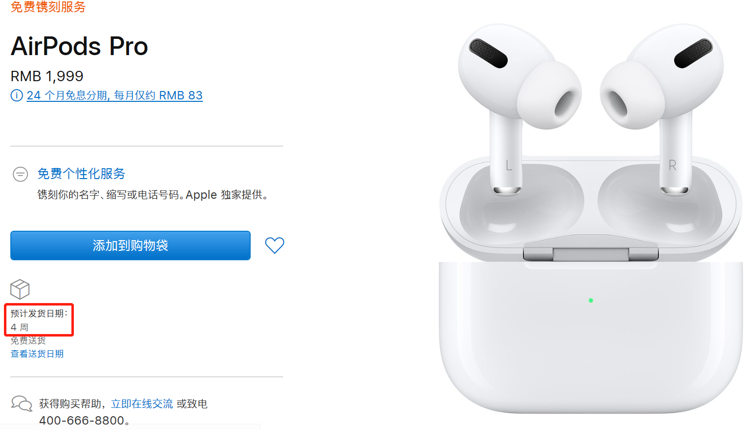 10月29日,苹果在官网发布新一代蓝牙无线耳机Airpods Pro,相比上一代耳机,新增主动降噪功能、支持防水、采用入耳式设计,中国区价格从上一代的1299元提升至1999元。苹果并没有为这款新无线耳机召开独立发布会,仅在官网上架,然而发布之后市场需求异常火爆,发货周期从最开始的1周变成2到3周,再到目前的4周,表明需求的增长大于产能的增长,苹果也紧急向供应商追加产能。从用户体验来看,各类产品评测的媒体对AirPods Pro的评价几乎一致好评。