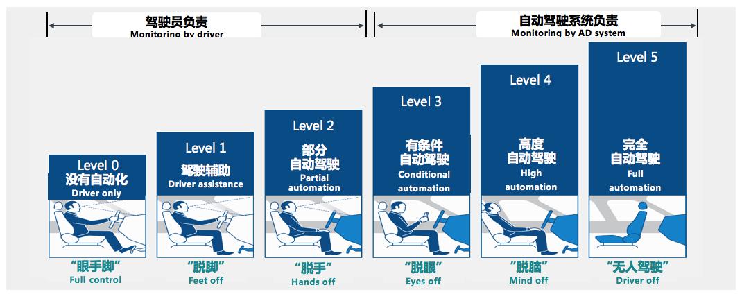自动驾驶按照自动化程度分为五个等级:从L1级别的辅助驾驶到L5级别的完全自动驾驶,目前商业化的量产车型基本上在L2/L3以内,这一层级的自动驾驶以摄像头视觉为主导,但从长期趋势上看,L5级别的完全自动驾驶才是最终的发展方向,而L3级以上基于视觉并不完全可靠。