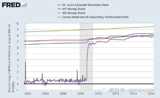 好在美联储知耻后勇,过去几十年来一直对大萧条的历史深入研究,在本次金融危机中上任的主席伯南克,更是研究大萧条的专家。从下图可以见到,本次危机中美联储对社会货币乘数下降进行了充分的反应,通过降息以及一系列的购买资产的动作保持了货币稳定,为美国尽快走出危机创造了条件。当年的第一个错误被避免了。