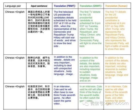 第一件是Google宣布把人工智能技术应用到了Google翻译中去了,新的系统叫Google神经机器翻译系统(GNMT)。Google表示:“与之前采用的算法相比,Google神经机器翻译系统(GNMT)能降低80%的翻译错误率,并且十分接近人类译员的翻译水平。可能大家对这个直观的印象不深刻,我们来看一下Google翻译给出的实际案例以及大家之后的反应。