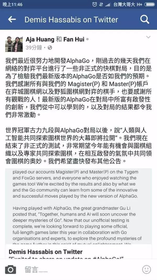 最近最火的莫过于就快让大家淡忘的的AlphaGo了,最近AlphaGo化身Master,在围棋对战平台与柯洁、聂卫平等中日韩围棋名将对战,获得60胜1平战绩,其中平局因Master掉线所致。此后,谷歌DeepMind团队测试工程师樊麾宣布Master为AlphaGo的升级版。依稀记得在半年前,DeepMind团队黄士杰在接受Engadget的采访时曾说,如果再给 AlphaGo 一年半载的话,说不定李世石真的就是史上唯一赢过 AlphaGo 一场的人了。果然,半载之后,我们看到令人叹服的结果。
