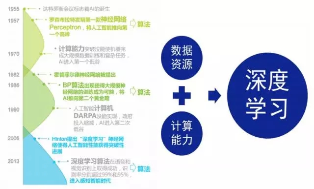 而当我们去深入了解这次人工智能的浪潮,我们第一个疑问是为何人工智能的提出已有半个多世纪,直到今天才这么火?我们发现这背后最大的突破来自于基于大数据的深度学习。之所以要说基于大数据的深度学习,我们认为大数据和深度学习缺一不可。