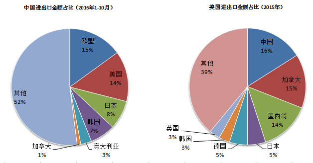 中美是对方重要的贸易伙伴,中国是美国第一大贸易伙伴,美国仅次于欧盟是中国第二大贸易伙伴。