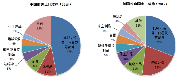 自从加入WTO 以后,中国对美国的出口增长迅猛,从2001年的1000亿美金左右,迅速增长到2015年的4800亿美元,而2015年美国向中国出口约1160亿美元,对美国来说当年贸易逆差3640亿美元。这么大的贸易逆差并不代表美国是吃亏的,实际上中美贸易品种具有很强的互补性。众所周知,中国对美国出口的商品以家电、电子半成品或者成品(比如苹果手机)、纺织品、轮胎、鞋帽为主,其中质优价廉的生活必须消费品占比在50%以上,让美国人民享受大量实惠。电子类产品很多本来就是给美国代工的。而美国对中国出口商品以高端机械设备、电子设备、运输设备、化工产品为主,属于科技含量高的商品。中美贸易是互惠互利,各取所需。