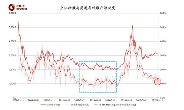 最近的市场比较低迷,春节前A股单日成交量跌破3000亿,过后第一天单日成交量仅有2400亿,网上更是出现了“A股持仓投资者账户数罕见跌破了5000万”的文章,不禁让人回想起2014年上半年当时诸多“A股账户活跃度逼近历史低位”的新闻报道。