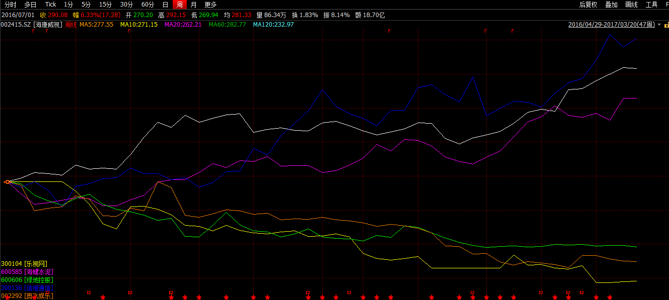 首先,先从强弱不同的几个指数,上证180、中小板成分、创业板成份中选取几个走势截然不同的标的。