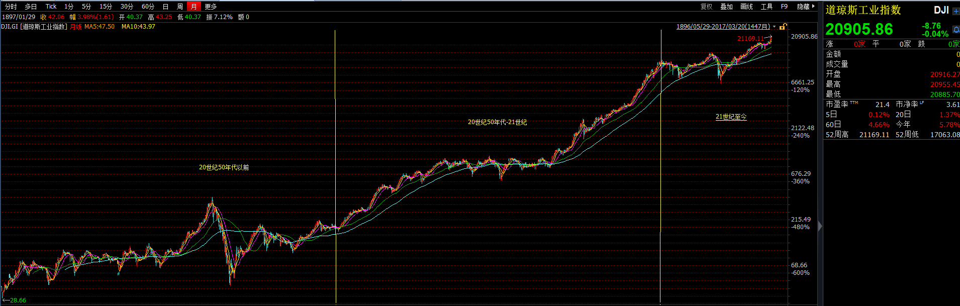 我们大致把美股百年以来的历史划分为3个阶段。