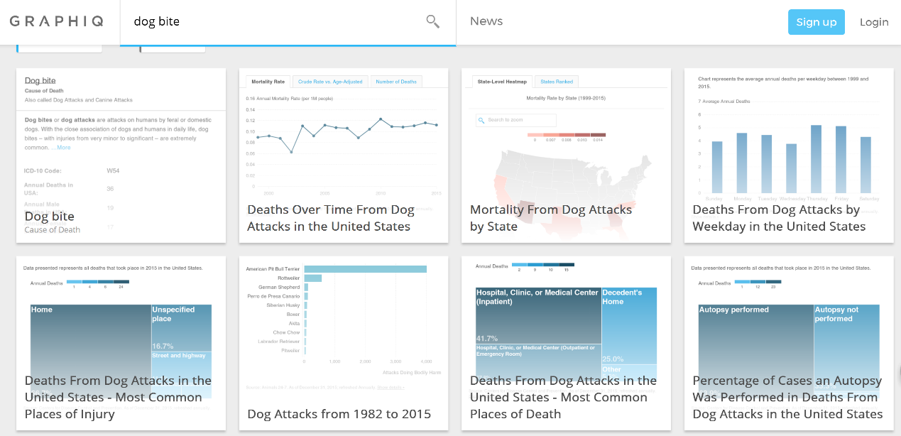 2016年8月,路透社宣布与语义技术公司Graphiq合作,他们的解决方案是预先假设哪些事件将被报道,之后人工智能可在极短的时间内从数据库中抓取数据,建立可视化图像,然后打包这些图像与所做的报道匹配。举例来说,如果你准备写一条狗攻击人的新闻时,Graphiq的人工智能系统已经把该事件基于历史数据的可视化内容生成完毕,在提升内容信息量的同时也为记者节省了大量时间。