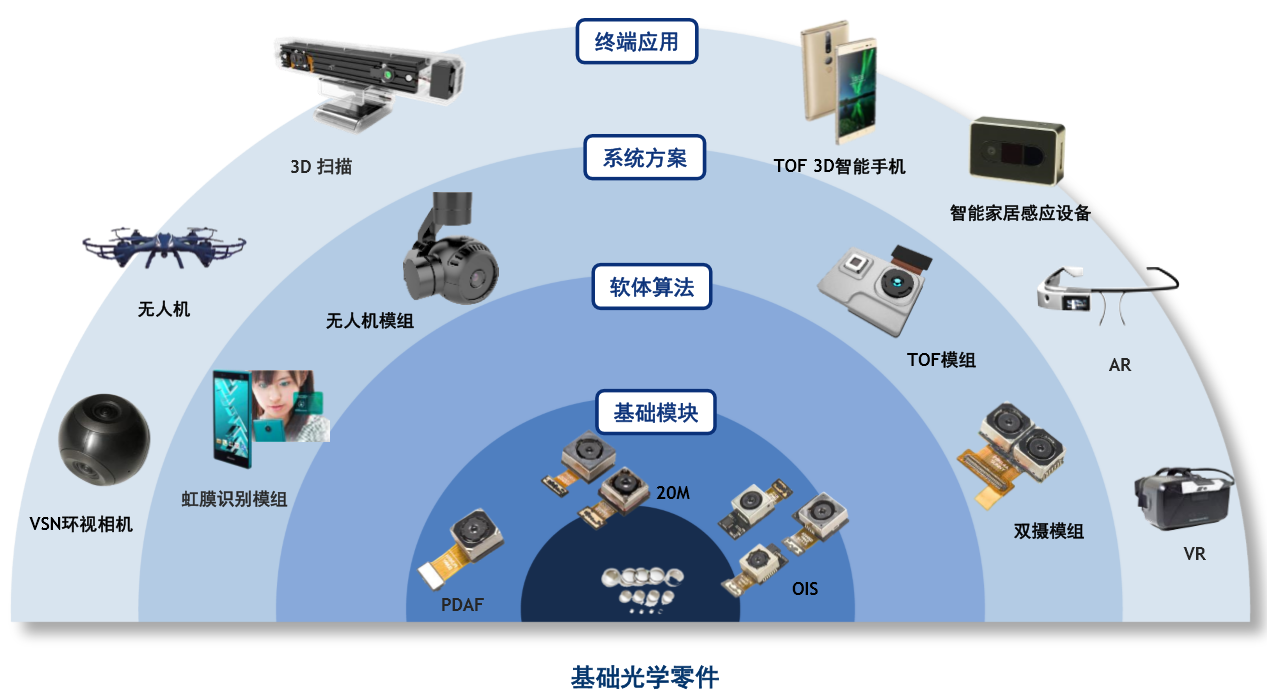 舜宇的未来发展战略为“smart eye战略”,将深耕摄像模组、手机镜头、车载镜头等传统硬件业务,依托自身光学能力,拓展现有产品技术应用领域,战略性布局VR、AR、虹膜识别、无人机、TOF、结构光、红外镜头等新兴领域,与相关公司建立良好客户关系,奠定先发优势,未来一旦行业爆发,舜宇将凭借在光学领域积累多年的技术优势和提前布局的先发优势迅速抢占市场份额。未来新型智能硬件的创新离不开镜头作为光学信息交互入口,光学镜头行业永远朝阳。目前舜宇正发力研究算法以提升附加值,软硬件结合造就智能光学影像系统解决方案提供商。
