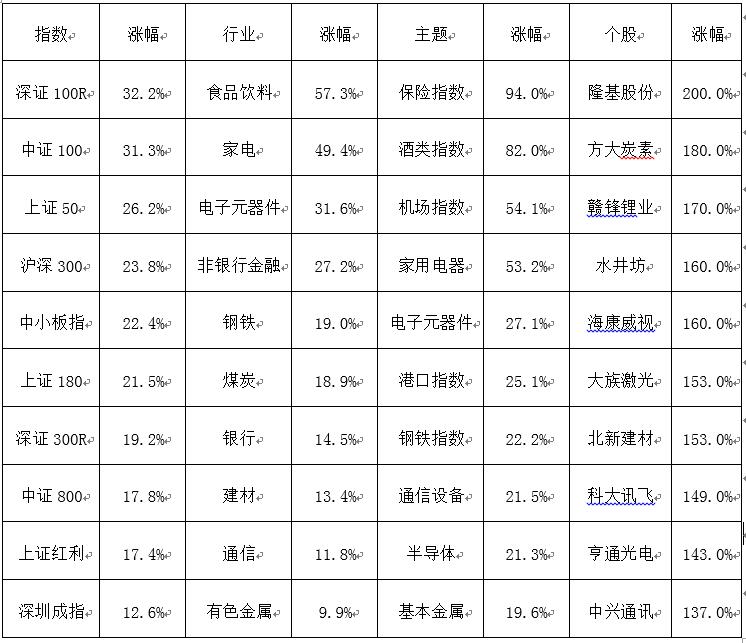 转眼又接近年底,大家都要板着指头算算今年的收成,又是几家欢喜几家愁。下图是截止11月16日今年涨幅最大的指数、行业、主题和个股(剔除今年上市新股)列表。市场还是呈现一幅非常清晰的结构化牛市格局。公募基金投资收益的中位数应该有15%左右,私募基金可能更好些。公募基金、私募基金和个人投资者赚钱的大有人在。