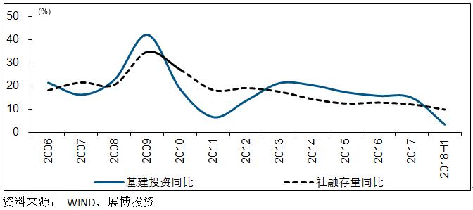 首先,从基建的资金来源看,信用收缩对于基建的影响非常明显。基建投资的资金来源可以分为国家预算内资金、自筹资金、国内贷款、利用外资和其他类资金,其中占比最高的为自筹资金,2017年占比达到60%,预算资金和贷款则各占15-16%,三者合计超过90%。由于自筹资金往往是地方专项债、城投债、非标、部分PPP等形式存在,所以自筹资金+国内贷款基本被计入社融,可以说社融与基建指标具有相当高的相关性和先行意义。在去杠杆的背景下,年初以来新增社融和社融余额增速持续回落,10月创下年内低点,因此决定了基建的增速不可能实现V型反转。从国家预算内基金情况来看,这块资金来源具有显著的撬动效应,但2018年《政府工作报告》将赤字率定为 2.6%,也在一定程度上限制了对基建投资的支持。另一方面,我们认为政府赤字率也有提升空间,未来财政政策可以更加积极。此外地方政府专项债不受狭义赤字率限制,有望在基建种承担更重要的职责。7月23日国常会提出的“加快今年1.35万亿元地方政府专项债券的发行和使用进度”,8月财政部公布了《专项债发行工作意见》,随后8-9月发行新增专项债即过万亿,占前三季度发行规模的80%以上,截止10月全年的1.35万亿额度已经发完。 如果2019年实现 3%的狭义赤字率及专项债新增规模的继续提升,国家预算内资金 2019 年将有一定的增加,全口径基建增速明年有望回到5%的上方。
